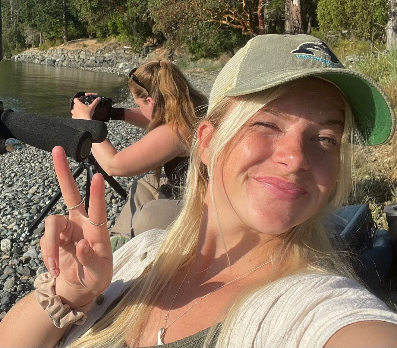 With three days left before our flight home, and an uneasy feeling about being able to snag a spot on the ferries back to mainland Washington, we left the island early, chasing reports of pods off the mainland. Within half an hour of leaving the ferry, we struck gold: orcas gliding through a sunset straight out of Free Willy. Felicity caught it all with a perfect wide shot, behind-the-scenes of me filming the close-up, and then, naturally, me crying my eyes out for a good twenty minutes before realising we still needed to find a place to sleep.